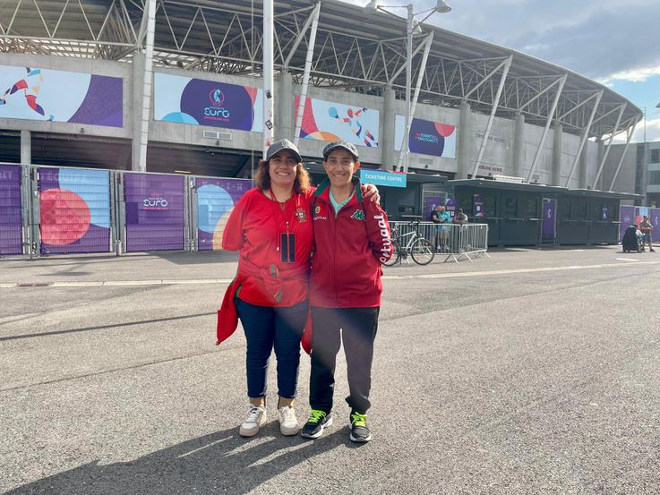 No feminino... e com muito feminino. Ana Sofia Mendes e Aruna, mãe e filha, respetivamente, viajaram de Inglaterra para a Suíça para darem força à Seleção Nacional.