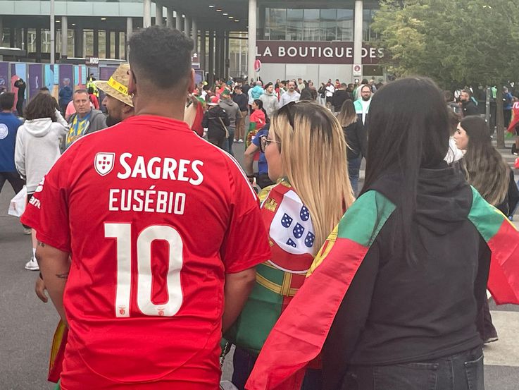 Eusébio da Silva Ferreira. Um dos símbolos maiores de toda a história do futebol português. O antigo craque luso também é lembrado por ocasião do Campeonato da Europa, neste caso, através de uma camisola de um adepto luso. Mais um sublime apontamento de reportagem captado pela sempre atenta Filipa Reis, jornalista que é enviada-especial de A BOLA à Suiça para acompanhar o percurso das Navegadoras na importante competição.