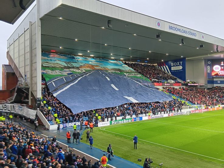 Aplausos de pé: ao minuto 26 Ibrox homenageia o adepto do Rangers que morreu em Lisboa, no jogo da primeira mão. 26 era a sua idade. 'Descansa, Tam McAllister', foi a mensagem numa tarja gigante