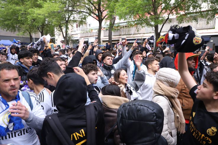 A desvantagem não parece tirar a esperança aos adeptos do Real Madrid, que fazem a festa às portas do Santiago Bernabéu.