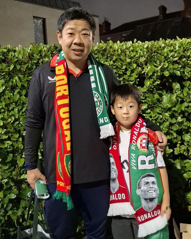 Pai e filho chineses vivem em Dublin e vieram apoiar Portugal e Cristiano Ronaldo, o jogador favorito da criança.