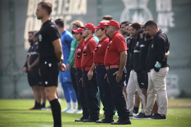 Os capitães das duas equipas, Aderllan e Pedro Álvaro, entram em campo com um casaco dos bombeiros, em homenagem aos soldados da paz que estiveram envolvidos no combate aos incêndios na última semana.