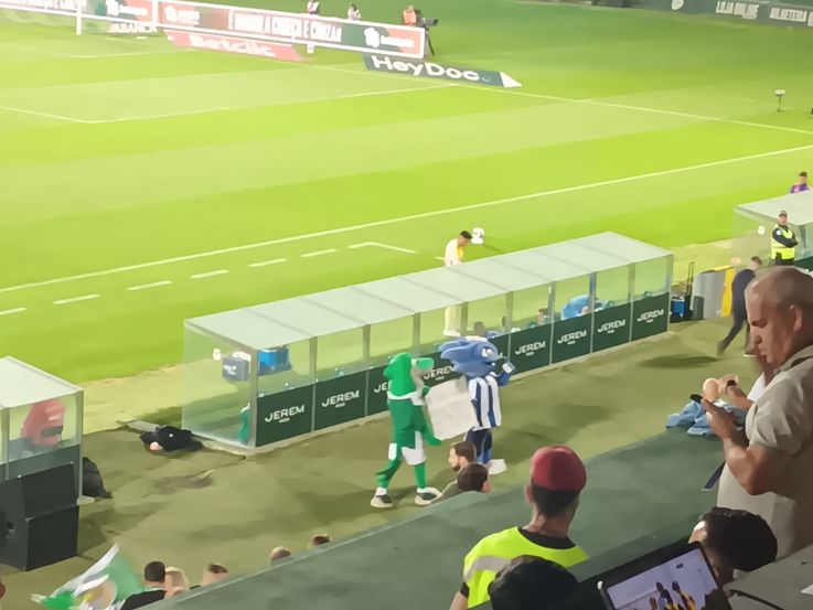 As mascotes de Rio Ave e FC Porto — Tubas e Draco — protagonizam um momento de boa disposição e fair-play fora das quatro linhas, que recebe alguns aplausos das bancadas.