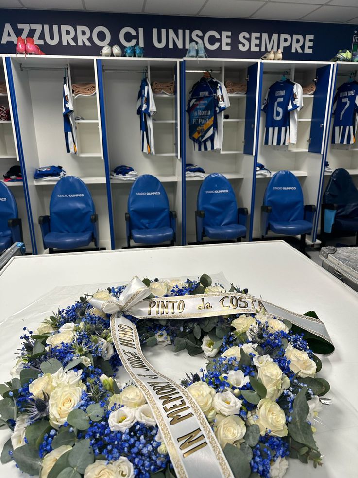 O plantel azul e branco deparou-se com uma surpresa no balneário do Olímpico de Roma. O emblema da capital italiana ofereceu uma coroa de flores ao FC Porto, em memória de Jorge Nuno Pinto da Costa, histórico presidente que morreu no último sábado, aos 87 anos. Bonito gesto dos romanos foi assinalado pelos dragões através das redes sociais.