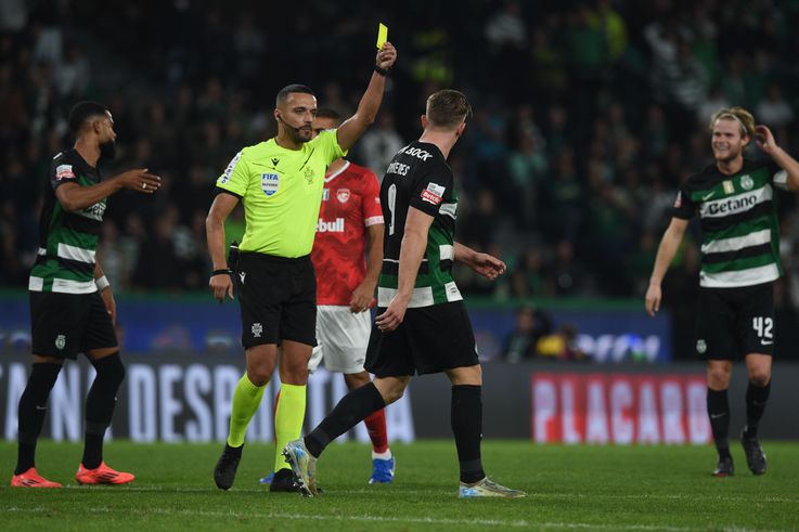Cartão amarelo para Sidney Lima, depois de ter travado Gyokeres ainda no meio-campo leonino.
