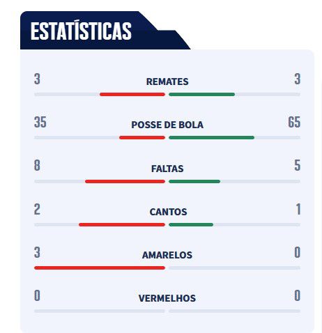 Termina a primeira parte com 0-0 no marcador. O facto do Sporting ter desferido o primeiro remate da partida aos 38' simboliza a desinspiração leonina. Livre direto executado por Debast iniciou tendência verde e branca de rematar de fora da área, que gerou principais lances de perigo. Ainda assim, muito mérito para a teia defensiva montada por Vasco Matos que anulou Gyokeres e todo o jogo entrelinhas da turma de Rui Borges. Ofensivamente, os alas deram largura, mas faltou uma presença mais vincada na área.