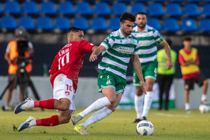 Que perigo para a baliza do Santa Clara! Roberto 'Pico' Lopes, capitão do Shamrock Rovers, desviou de cabeça ao primeiro poste um livre, com a bola a passar rente ao poste contrário