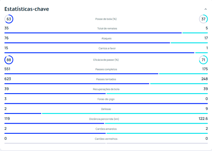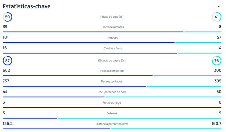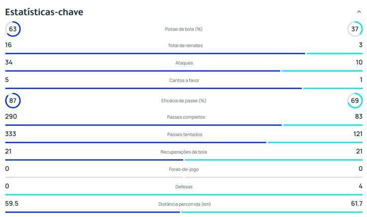 Fique com as estatísticas da partida.