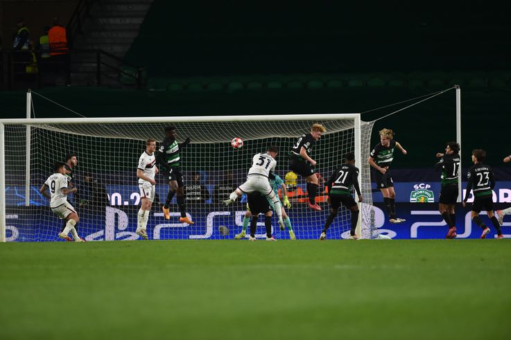 O momento em que o Sporting sofreu golo, após cabeceamento de Beukema e desvio, involuntário, de Pobega: