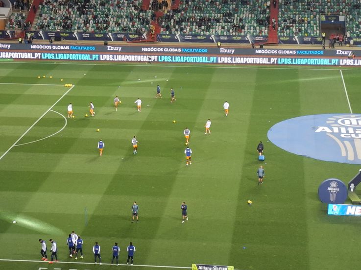 Também o conjunto verde e branco já está em aquecimento. Recorde o onze inicial da equipa orientada por Rui Borges: Franco Israel; Iván Fresneda, Ousmane Diomande, Jeremiah St. Juste e Matheus Reis; Geny Catamo, Hidemasa Morita, Morten Hjulmand (C) e Maxi Araújo; Francisco Trincão e Viktor Gyokeres.