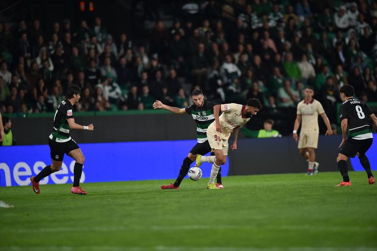 Suplentes Sporting: Franco Israel, Matheus Reis, Harder, Fresneda, Biel, Hjulmand, Ricardo Esgaio, Geovany Quenda e Eduardo Felicíssimo.