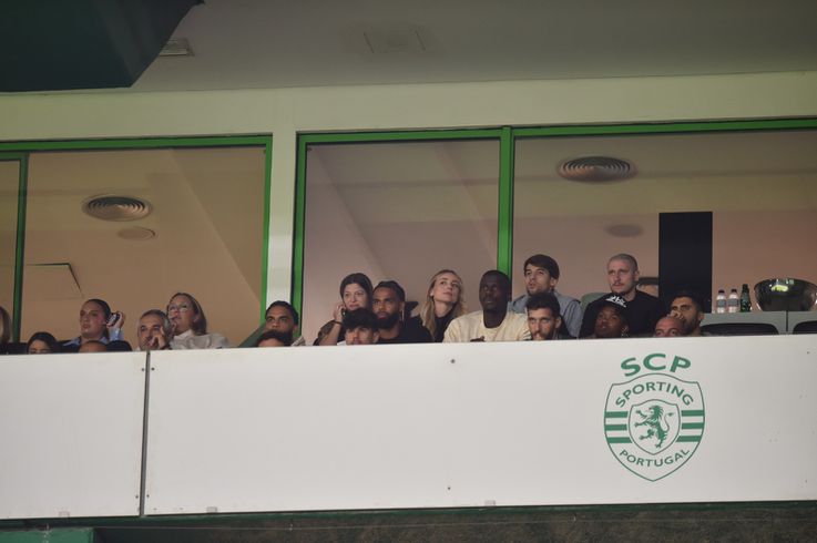 St. Juste e os lesionados do Sporting no camarote - Foto: Miguel Nunes