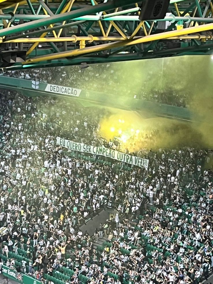«We walk togheter, Rúben Amorim 2050», lê-se numa tarja nas bancadas.