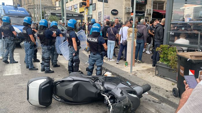 Horas antes do arranque da partida, um grupo de cerca de duas dezenas de ultras do Nápoles atacaram, montados em motas, adeptos do Sporting que se encontravam na Piazza Marittima, no centro da cidade, tendo-se registado alguns ferimentos.