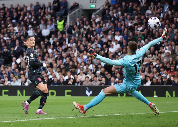 Grande defesa de Vicario! É um erro clamoroso de Hojbjerg, que permite o remate a Phil Foden, mas a saída atenta de Vicario nega o golo ao inglês!