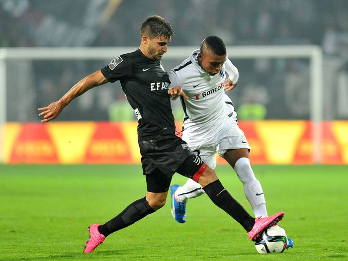 Remate de Diogo Sousa esbarra em Filipe Melo.