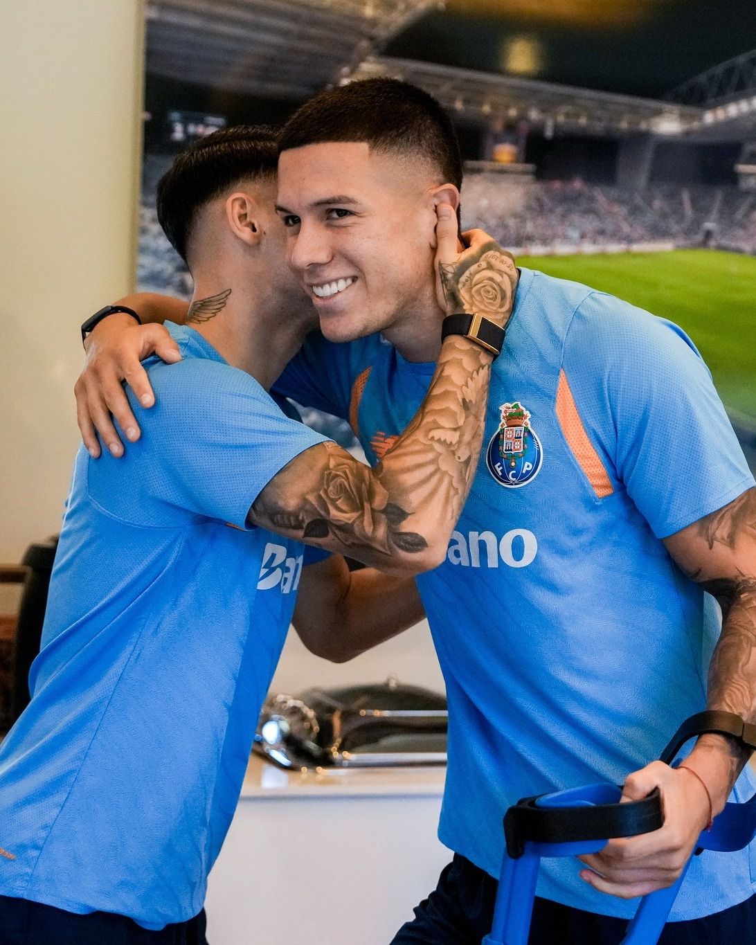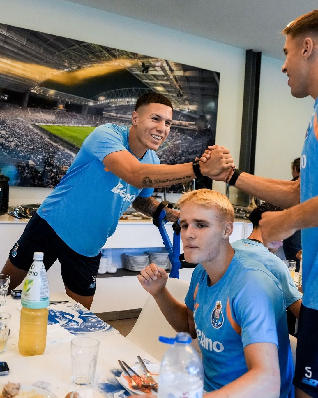 Nehuén dirigiu algumas palavras aos companheiros de equipa no relvado, posou para a fotografia com o plantel e ainda recebeu um abraço do treinador, Francesco Farioli.