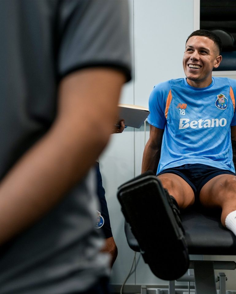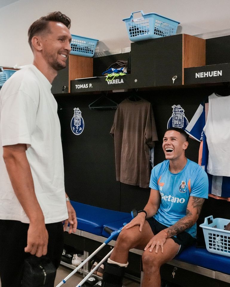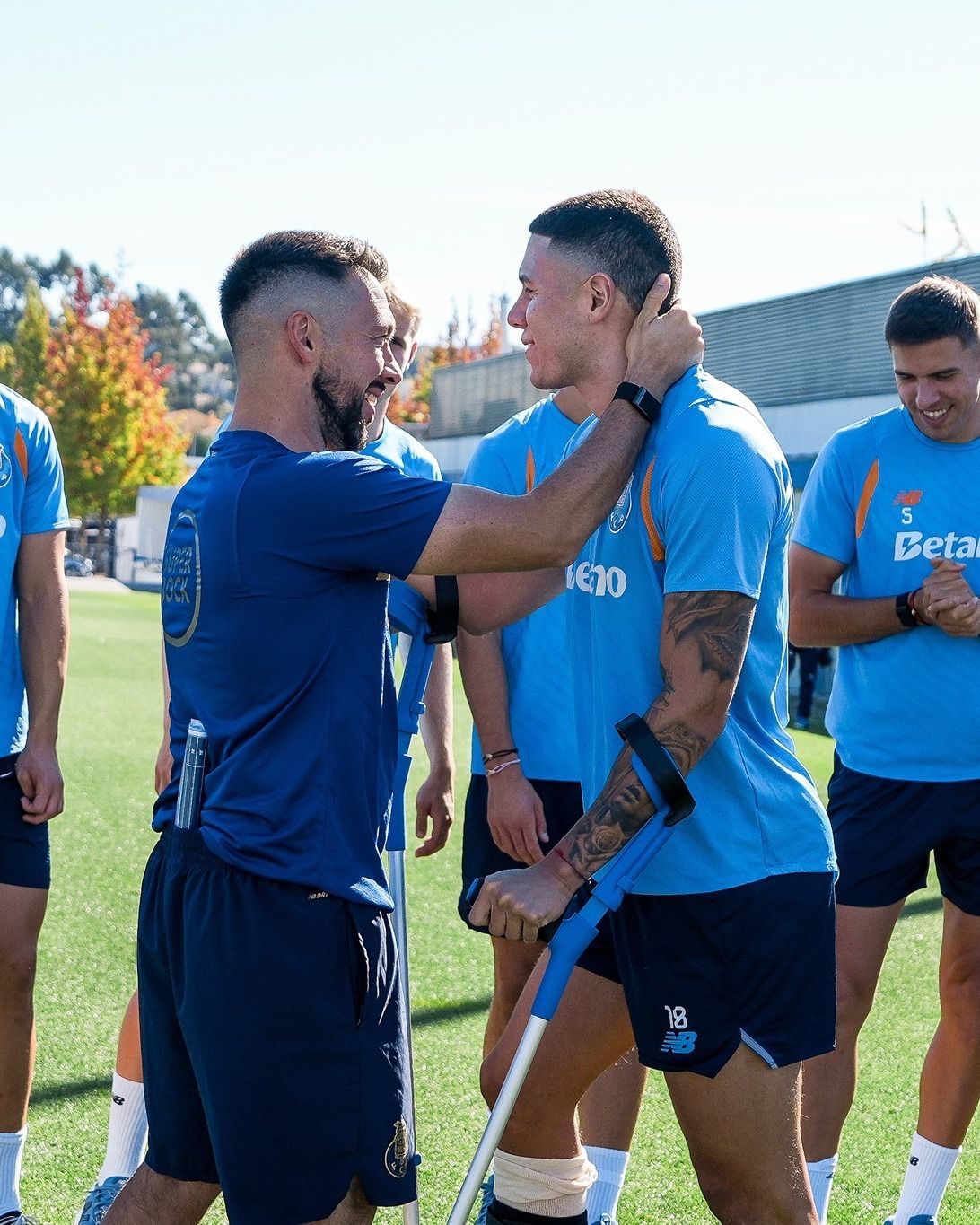 Central argentino voltou ao centro de treinos do FC Porto esta terça-feira. Dificilmente voltará a jogar esta época, mas mostrou-se feliz e à conversa com os companheiros, Luuk de Jong incluído