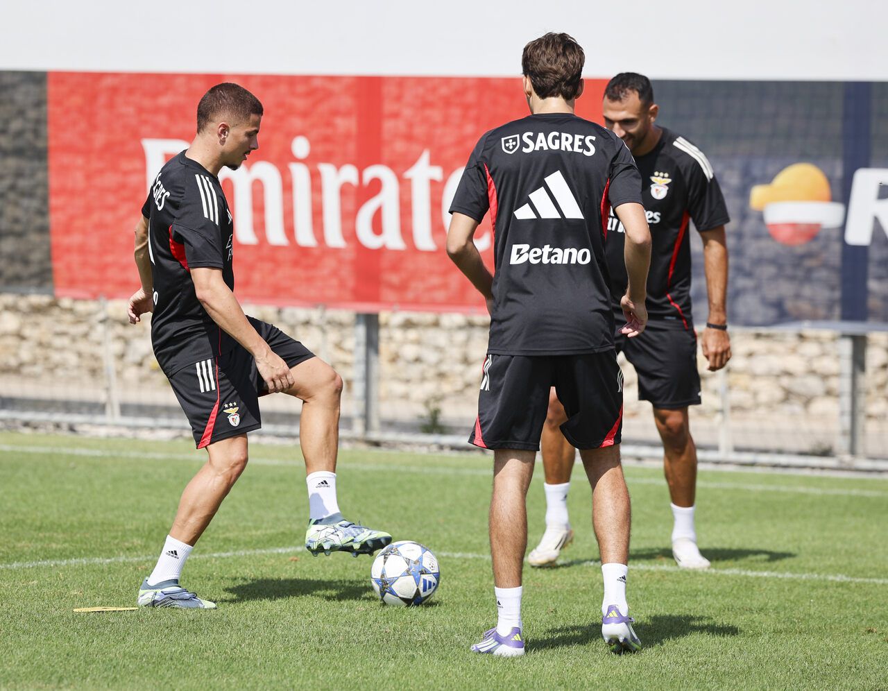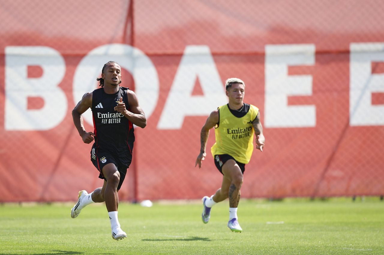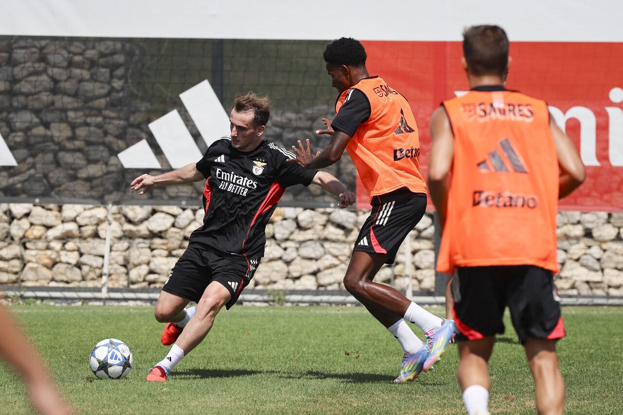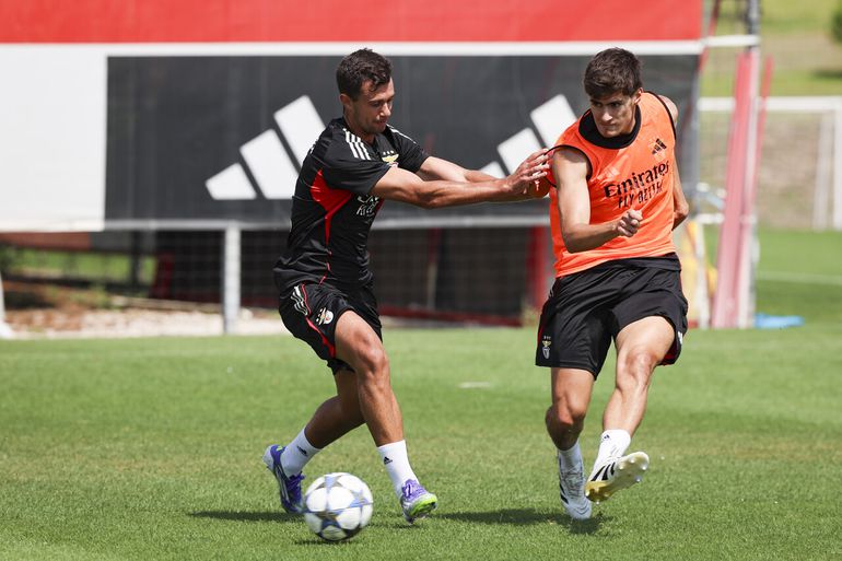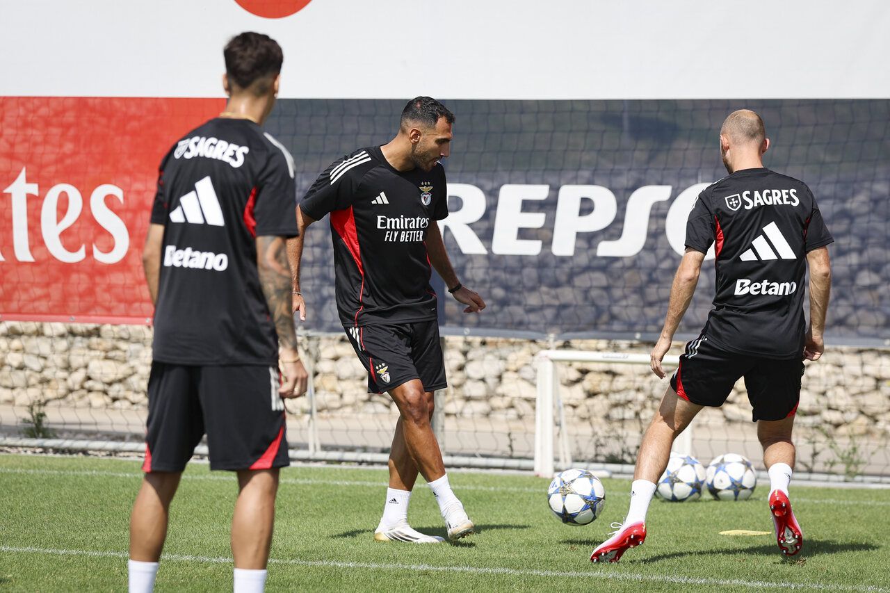 Muitos sorrisos e uma 'reunião do staff': as melhores imagens do treino do Benfica