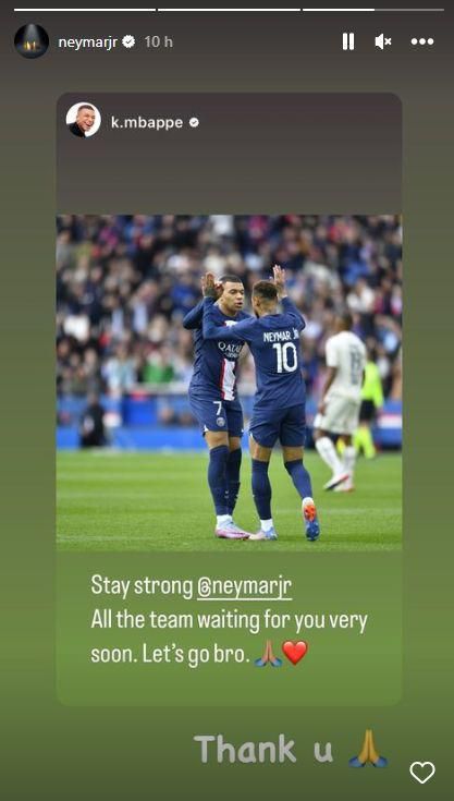 Neymar lamenta nova lesão e agradece apoio de Mbappé (fotos)