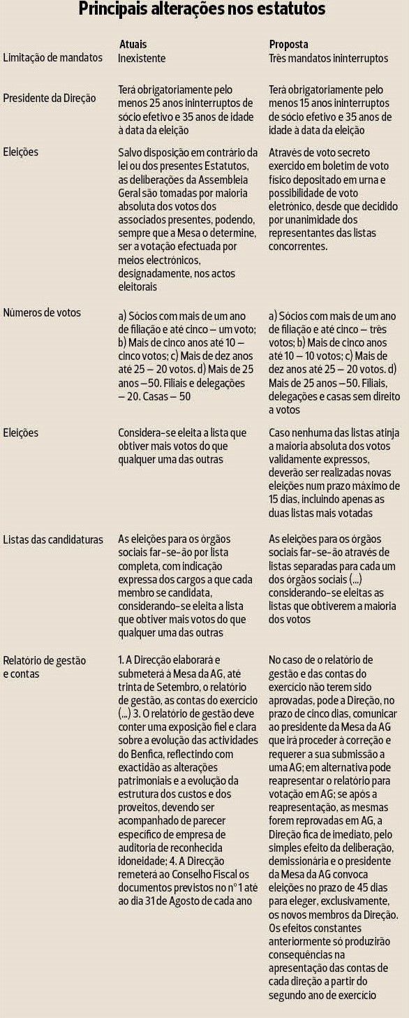 Bom dia! Os sócios do Benfica votam, este sábado, entre as 9h30 e as 22h30, no Pavilhão número 2 do Estádio da Luz, a proposta final dos novos estatutos. O processo foi longo, teve avanços, recuos, polémica e momentos de tensão. Com origem em promessa eleitoral de Rui Costa, tem agora o fim à vista três anos, três meses e 18 dias depois da primeira reunião da Comissão de Revisão de Estatutos.