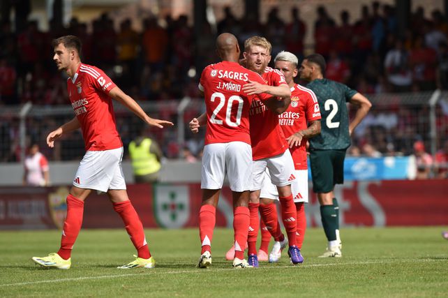 ONZE DO BENFICA: Trubin, Tiago Gouveia, Tomás Araújo, Morato, Álvaro Carreras, Florentino, Leandro Barreiro, Aursnes, Neres, Marcos Leonardo e Pavlidis.