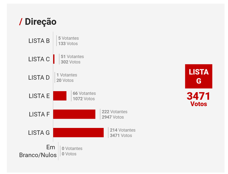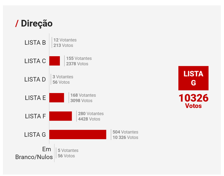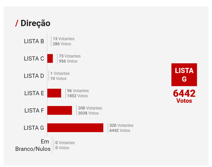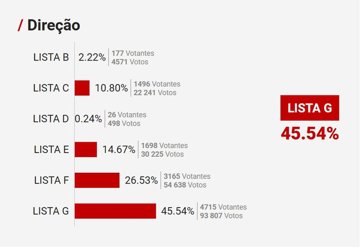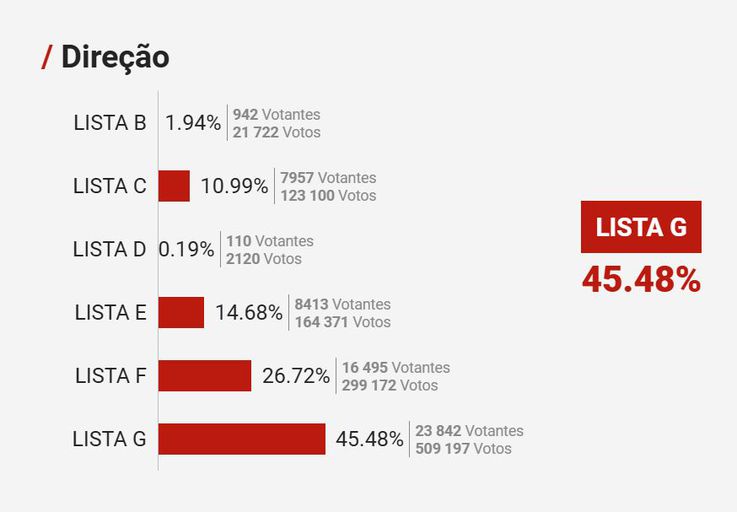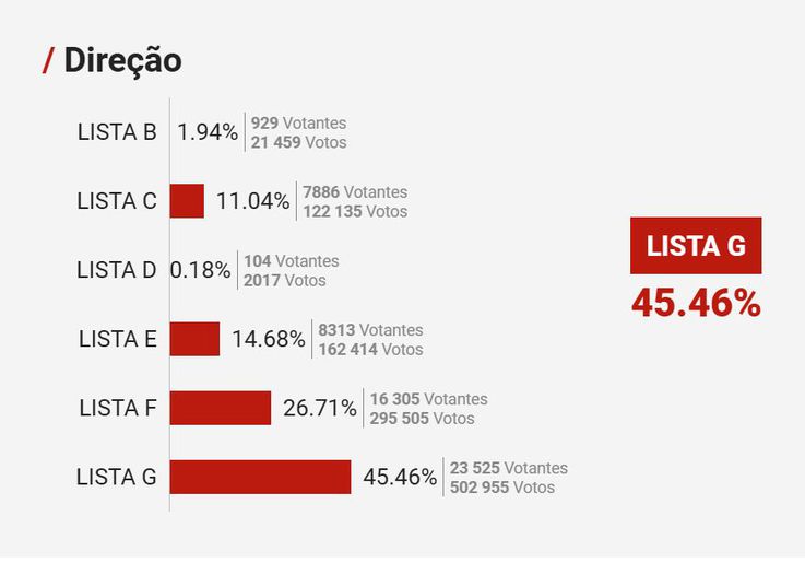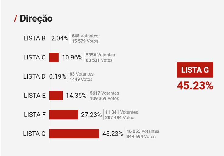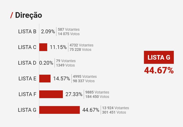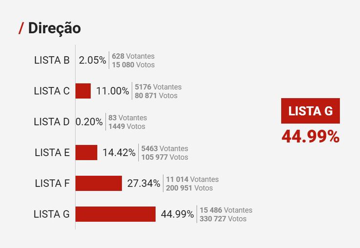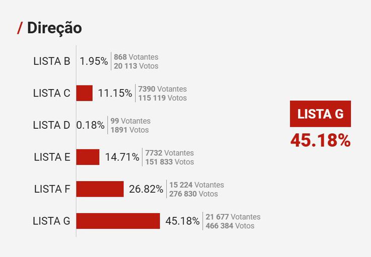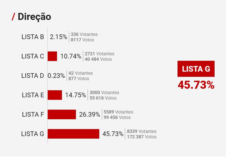 Na primeira volta, a lista que obtiver maioria absoluta (mais de 50% dos votos) vence o órgão social em disputa. Nos órgãos em que tal não aconteça no sábado, as duas listas mais votadas seguem para segunda volta, agendada para 8 de novembro