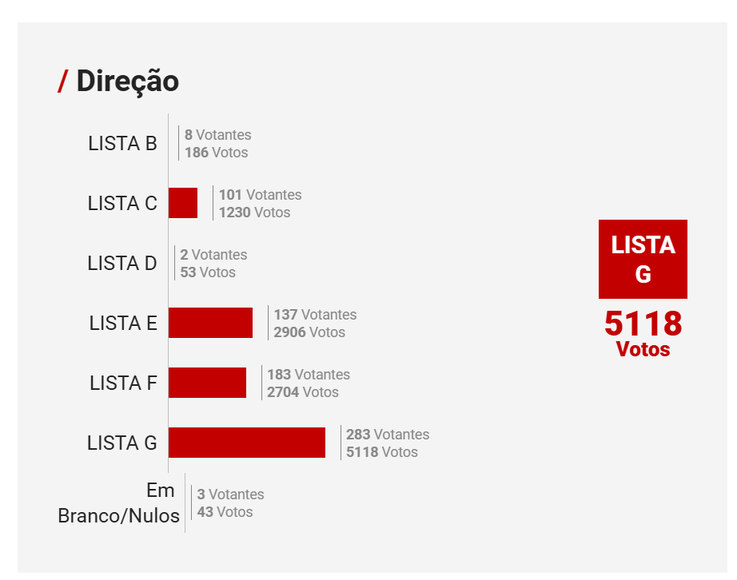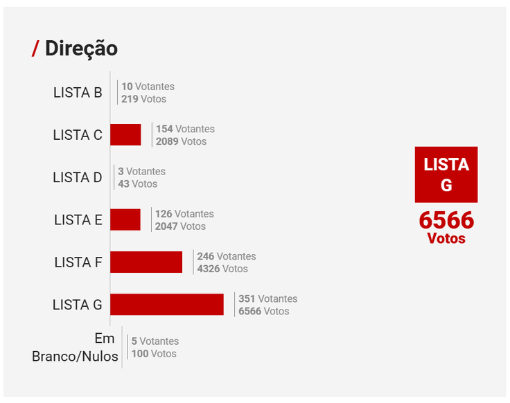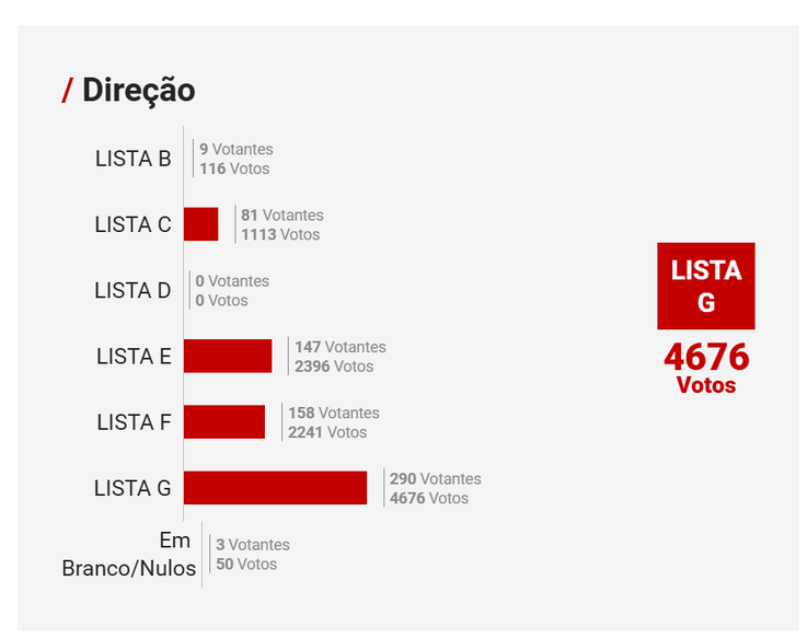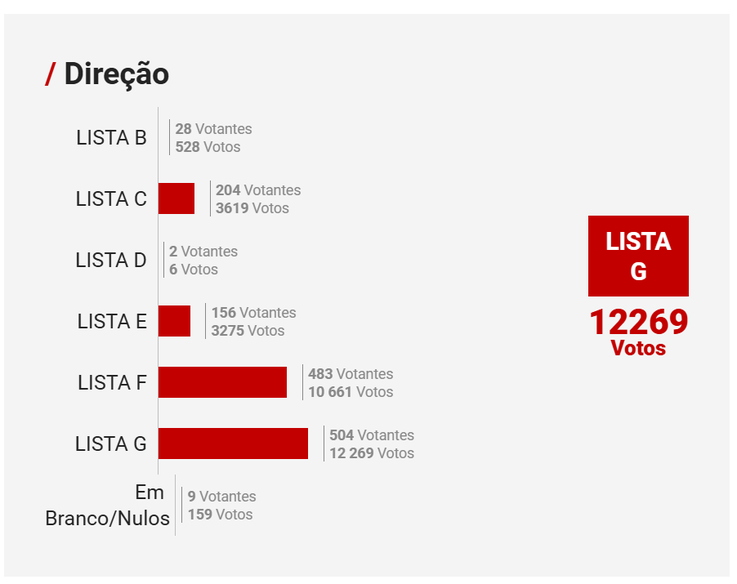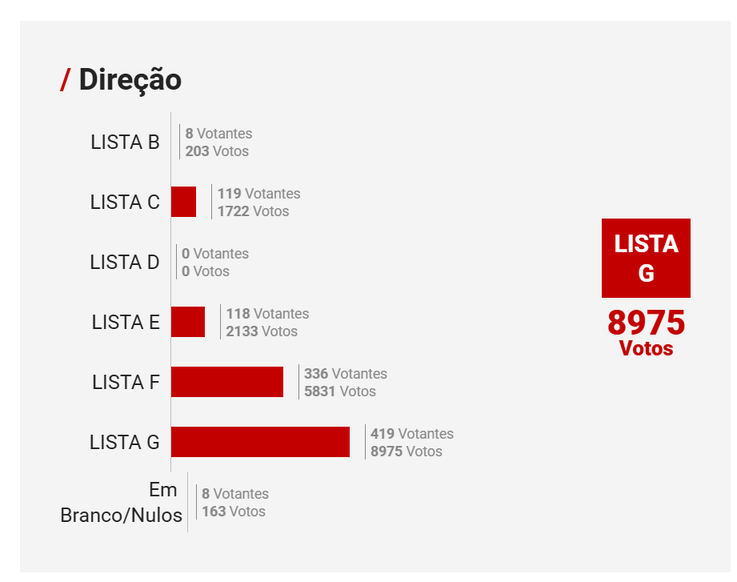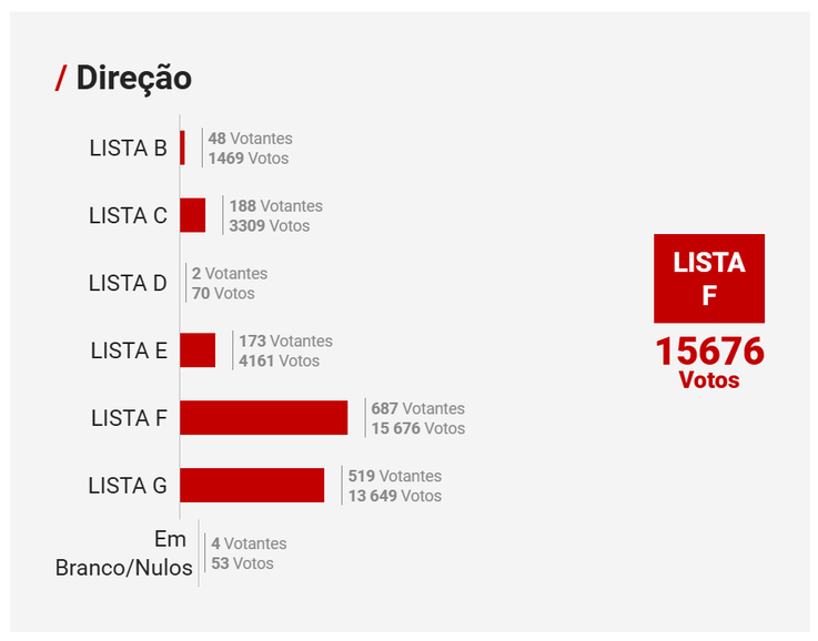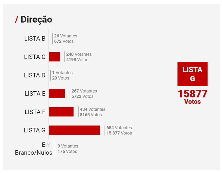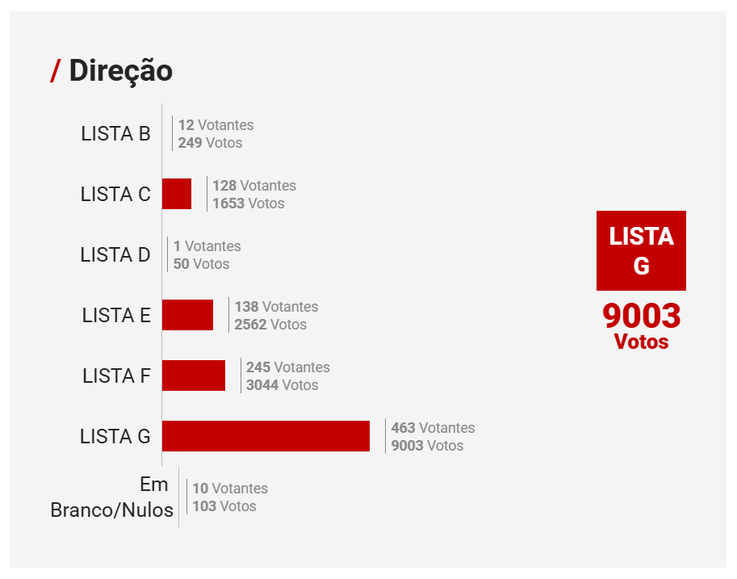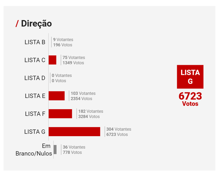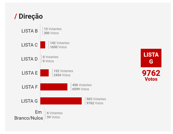 Na primeira volta, a lista que obtiver maioria absoluta (mais de 50% dos votos) vence o órgão social em disputa. Nos órgãos em que tal não aconteça no sábado, as duas listas mais votadas seguem para segunda volta, agendada para 8 de novembro