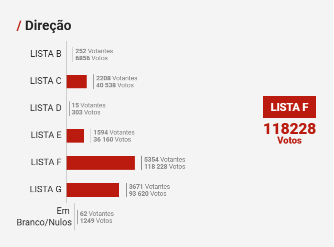 12h58: 97 secções (de 108) apuradas. Falta anunciar os votos de 28.433 sócios votantes.