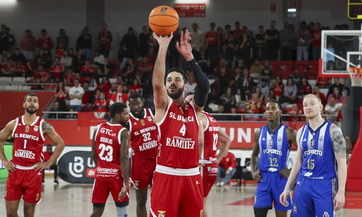 Makram Romdhane marca e sofre falta e não desperdiça o lance livre para dar a primeirra vantagem ao Benfica, 88-85, no prolongamento.
