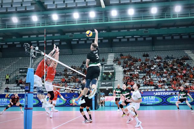 Remate de Jan Galabov frente a três adversários no bloco dá o 19-24