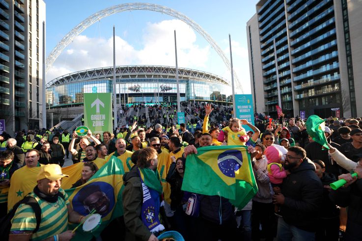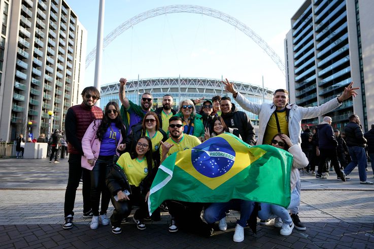 São muitos os brasileiros, na sua maioria emigrantes a viver na região de Londres, que estão a dirigir-se para Wembley. A canarinha é uma religião!