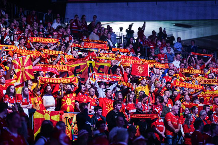 Ouve-se o hino da Macedónia do Norte, liderada pelo antigo internacional Kiril Lazarov, melhor marcador da história das competições europeias com 1306 golos