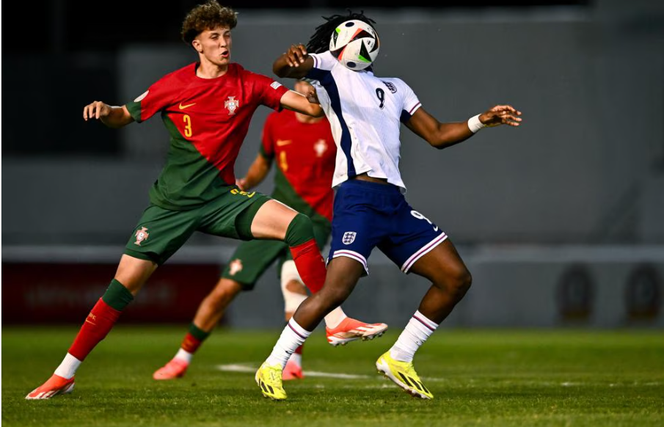 43'- Golo da Inglaterra (1-1). Marca Mikey Moore. O extremo inglês concluiu uma grande jogada iniciada no corredor direito. Nota ainda para a palmada infeliz de Diogo Ferreira, na sequência de um cruzamento, que endereçou, involuntariamente, a bola para os pés do jogador inglês, que limitou-se a empurrar para o fundo das redes. Está tudo empatado