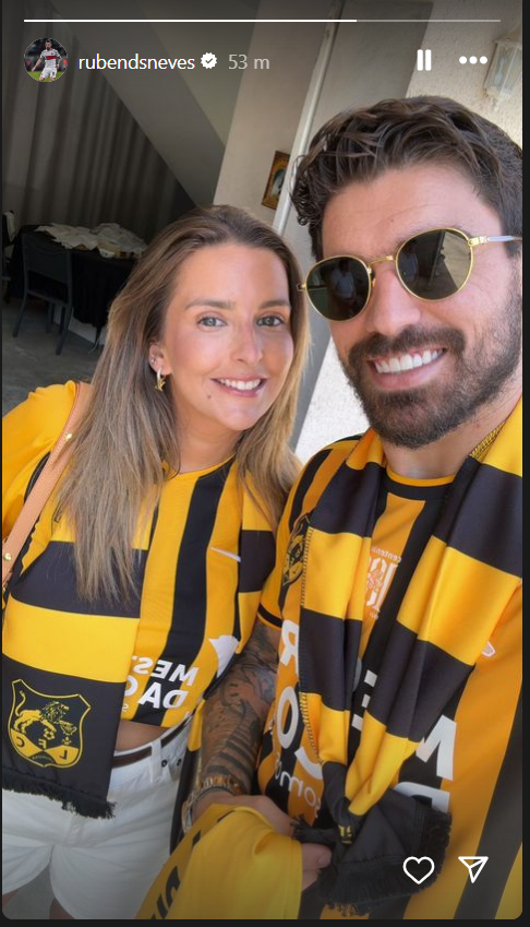 O Lourosa vai ter um adepto especial. Rúben Neves, médio internacional português convocado para o Euro-2024, e a mulher estão devidamente equipados com as cores do clube para um jogo que pode ser histórico para o conjunto orientado por Jorge Pinto.