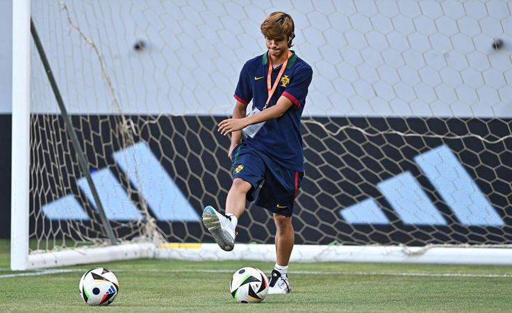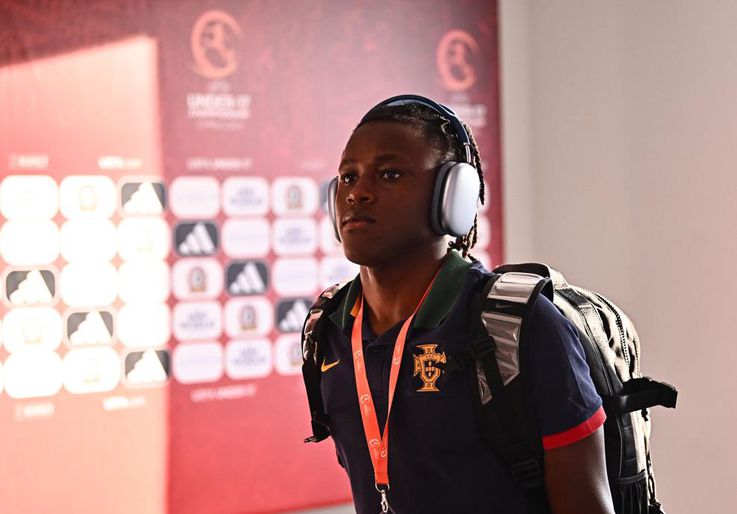 Os jogadores de Portugal já chegaram ao Estádio. Na imagem, está Geovany Quenda, uma das grandes arma no ataque de Portugal. O extremo do Sporting é muito talentoso, rápido e tem um 1x1 desconcertante e já mereceu, inclusive, elogios de Roberto Martínez, técnico da Seleção principal portuguesa.