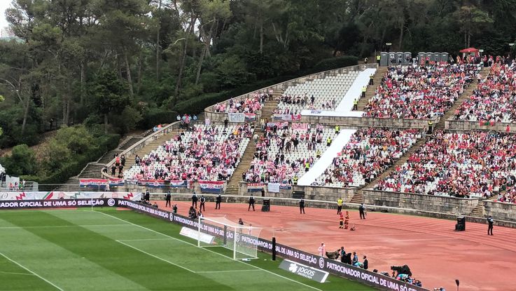 As bancadas do Estádio Nacional ainda se vão compondo, com bastante fila na A5 de pessoas a tentar chegar ao Jamor.