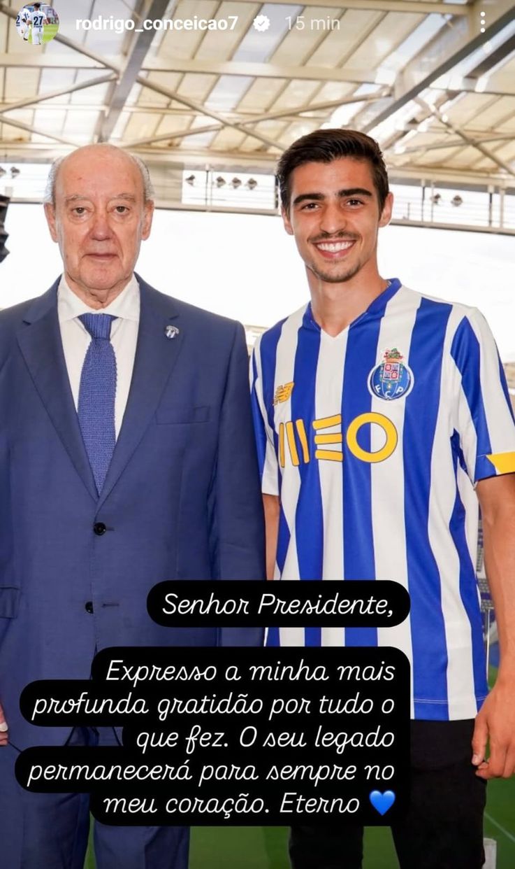 Rodrigo Conceição, ex-jogador do FC Porto e filho de Sérgio Conceição, reage à morte de Pinto da Costa: