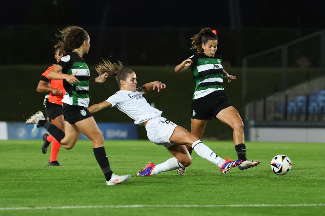 Terminou a primeira parte! 1-1 com vantagem de 3-2 para o Real Madrid... O Sporting até entrou bastante pressionante e rapidamente inaugurou o marcador, mas a resposta da equipa da casa foi imediata. A partir daí, as leoas perderam um pouco o controlo do jogo com Ana Capeta a ser, ainda assim, uma das mais inconformadas. Do lado do Real Madrid, claro destaque para Del Castillo a criar grandes problemas no corredor esquerdo e com várias oportunidades para dar a volta ao marcador. O Sporting está vivo para a segunda parte!