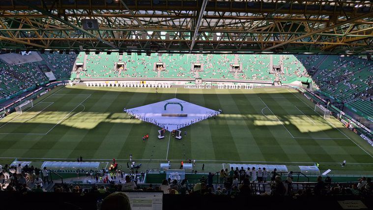 À medida que as bancadas se vão enchendo, também o volume dos aplausos vai subindo. Que ambiente se vive, por esta altura, no Estádio de Alvalade!