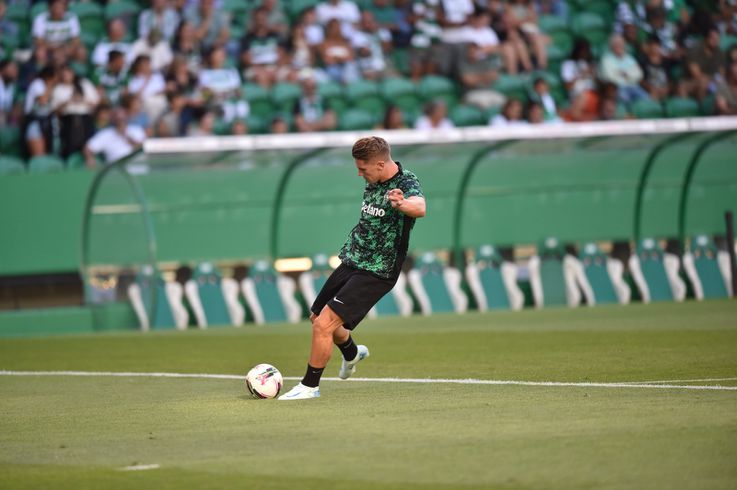 19' - Grande corte de Gonçalo Inácio, a afastar a bola com a cabeça rente ao relvado e a merecer o aplauso das bancadas!