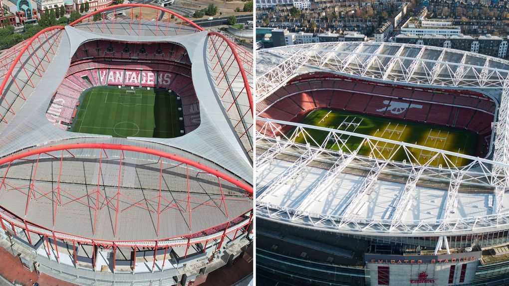 Estádio da Luz e Emirates Stadium estão entre os estádios que apresentam semelhanças entre si (Imago)