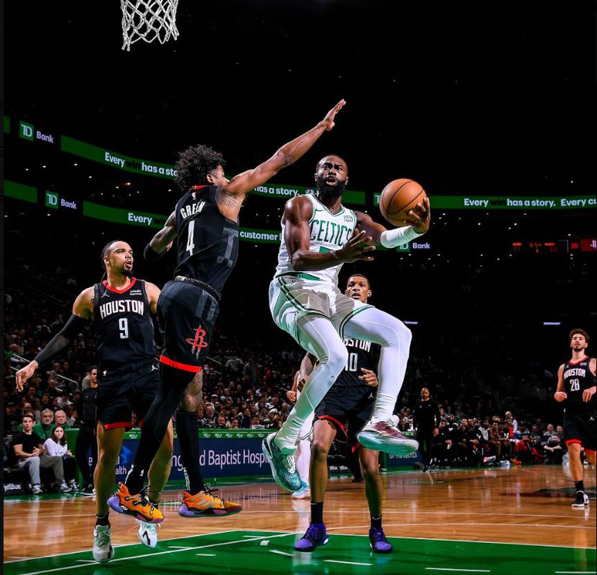 E foi uma vitória categórica, já sem vestígios de cansaço depois de dois jogos seguidos, por 145-113 frente aos Houston Rockets, com Jaylen Brown em grande: 32 pontos (4 triplos) e 6 ressaltos.