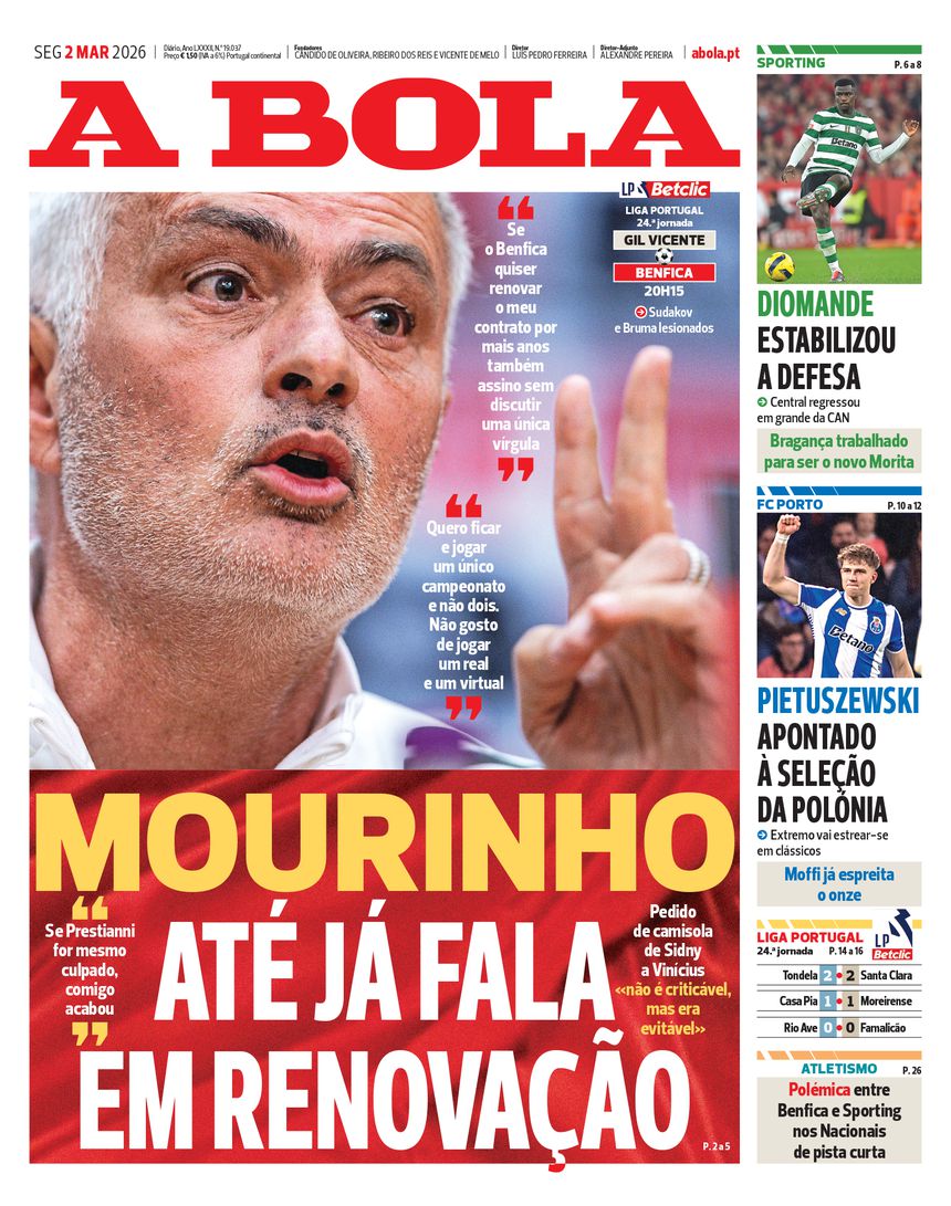 Benfica revela a classificação virtual de que falou Mourinho