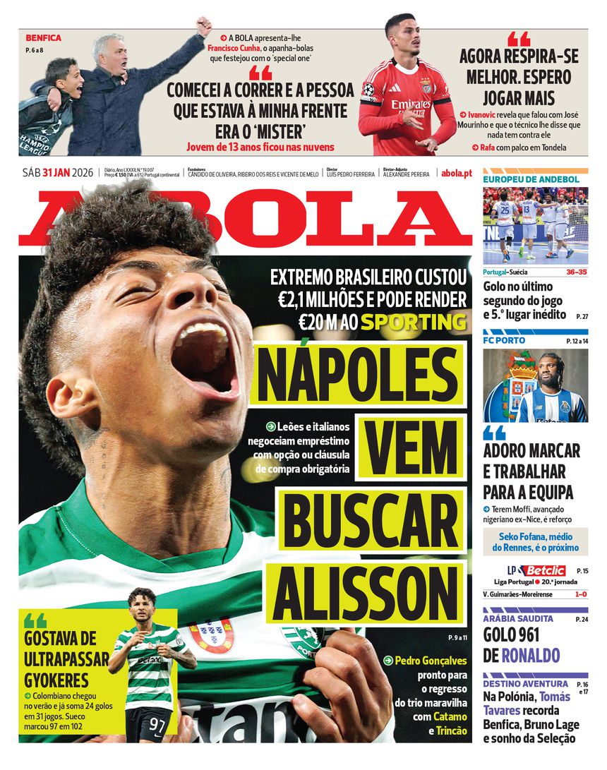 Alisson em marcha: Nápoles vem buscar extremo que pode render €20 M ao Sporting