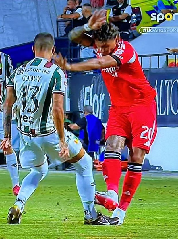 48' Falta apenas imprudente e não negligente, Richard Ríos tenta tocar na bola e encosta o seu joelho e perna direita na perna esquerda de Marezi, levando à sua queda, embora tenha sido à entrada da área, por haver outros jogadores no lance e por não ir na direção da baliza não houve corte de ataque prometedor, razão pela qual apenas foi assinalado livre direto sem qualquer ação disciplinar. Tudo certo na decisão do árbitro.