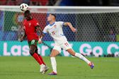 26' Coufal arriscou mas não cometeu infração sobre Rafael Leão. O checo colocou a mão direita no ombro esquerdo do adversário, em contacto ligeiro e sem impacto na tentativa de finalização do português. Lance legal na área da seleção checa.
