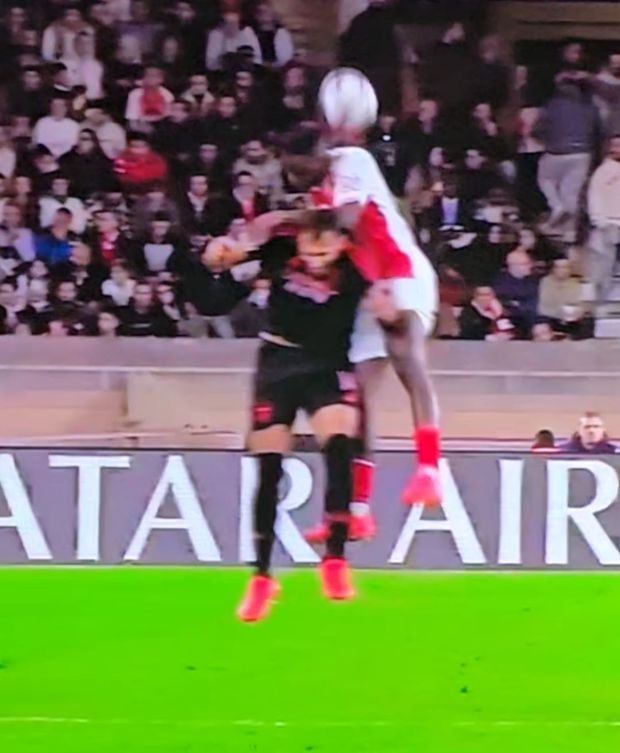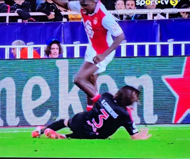 67' Na sequência de lançamento lateral de Vanderson, a bola ressaltou do pé para o braço esquerdo de Akliouche de forma inesperada. Não houve infração antes do segundo golo do Mónaco.