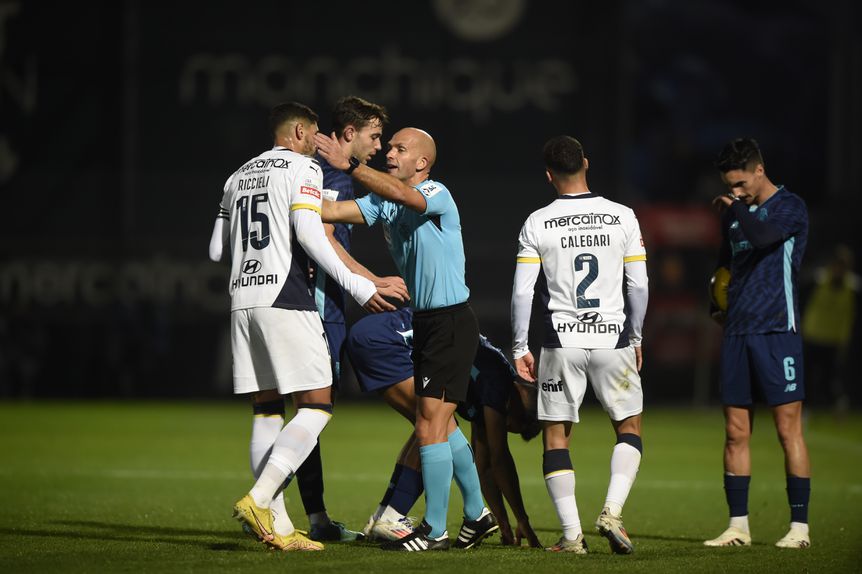 70' Nehuén Pérez devia ter sido advertido. O central azul e branco entrou de cima para baixo, atingindo/pisando por trás o calcanhar direito de Gustavo Sá. A infração negligente escapou ao escrutínio da equipa de arbitragem