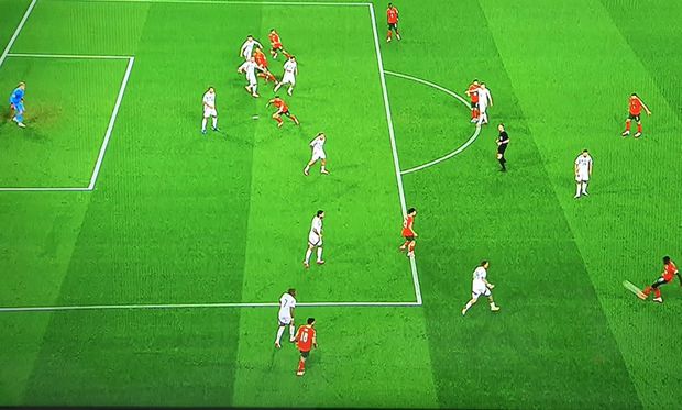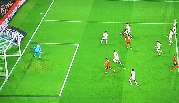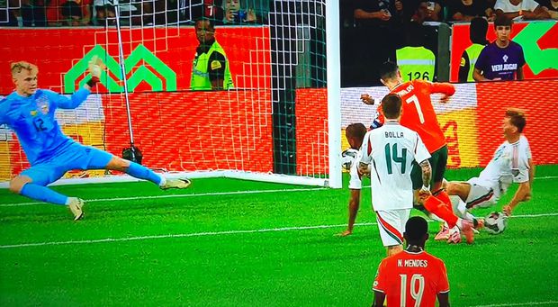 22' Sem fora de jogo. Quando Nélson Semedo cruza a bola para Cristiano Ronaldo, este não está em fora de jogo, pois tem dois adversários entre ele e a linha de baliza, sendo que é Milos Kerkez o jogador que valida a posição do capitão português. Golo legal